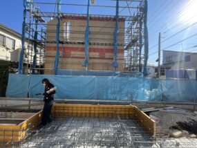 奥に建てられた方との共有通路となる旗竿敷地はアスファルトで綺麗に舗装が完了しました。