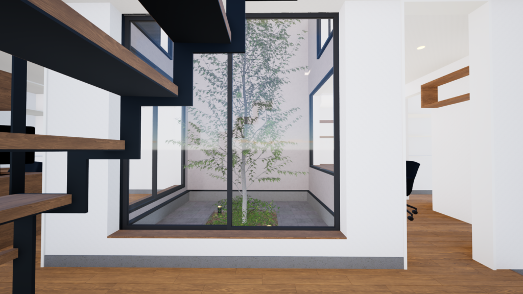 住まいの中心に設けたのは、光と風をやさしく導く「中庭」。