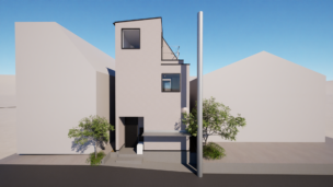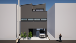 建物に囲まれた密集地という都市特有の条件の中で、“どうすれば心地よく暮らせるか” を丁寧に考え抜いた住まいです。